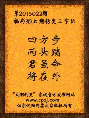 3D第2015022期太湖字谜:四方步,两头踹,君虽命,将在外