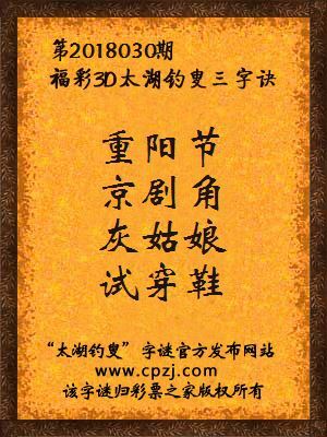 福彩第2018030期3d太湖字谜:重阳节,京剧角,灰姑娘,试穿鞋