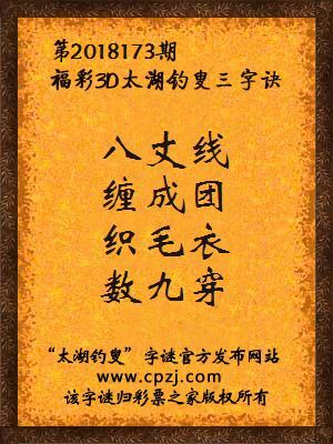 福彩第2018173期3d太湖字谜:八丈线,缠成团,织毛衣,数九穿