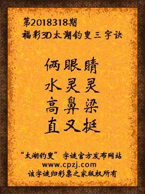 福彩第2018318期3d太湖字谜:俩眼睛,水灵灵,高鼻梁,直又挺