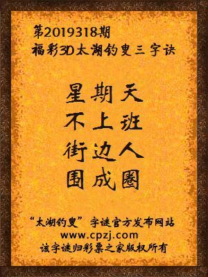 解3d第2019318期太湖字谜: