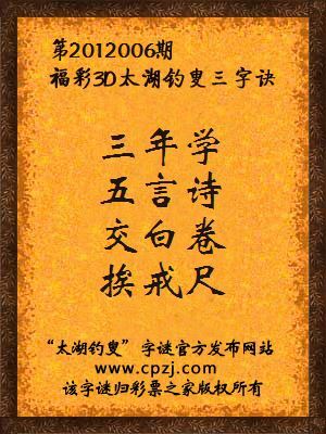 解福彩3d第12238期太湖字谜一口井,井,有圆的有方的,解1、0、4;九只桶,九个大水桶,解0、9;上者轻,合下句。下者重,上面小下面大,解数字8;
