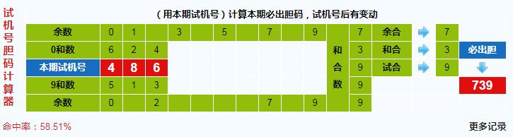 上期号码开出了410,偶奇偶、小小小组合,组六形态,结合试机号和胆码计算器的结果,本期关注号码47;近期出现了全奇组合以后走势有一定的调转变化,本期防两奇一偶组合出现;组选推荐:134679。