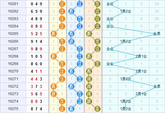 结合质合组合走势图来看,上期开出合质合,开出了1质2合的组合,目前该组合连开2期,从最近开出的质合走势来看,本期开出全合的机会很大,重点关注全合组合,防1质2合。