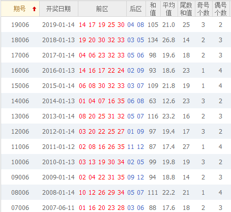 一、在2007-2019年间,006期共计开出13期,和值依次开出88-111-94-99-87-97-116-63-109-93-98-134-1055,和值震荡幅度并不算大,2020006期和值有下滑信号,振幅应在10点以上。
