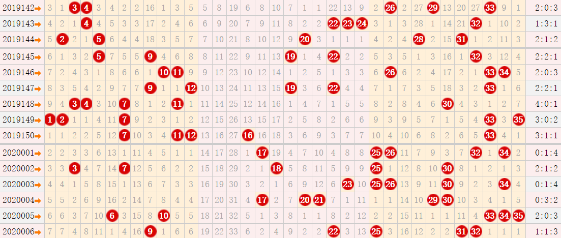 重码:在最近2期开奖中,都无重码中出,目前重码有回补之势,在最新的2020007期中,需注意重码可能回补1个。