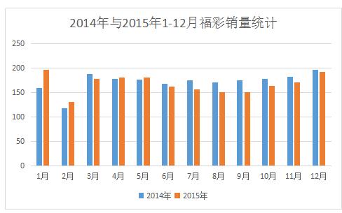 2015年全年福彩共销售2015.11亿元,较2014年相比有所减少,同比下降2.16%,近六年来销量首次出现下降。