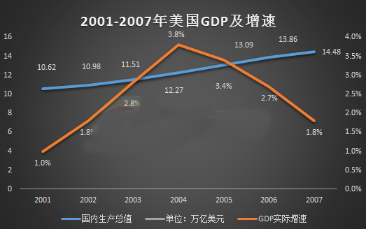 在2001年到2007年的7年里,中国GDP从不到10万亿人民币,一路攀升至24.66万亿人民币,实际增速常年保持在9%以上,2006年10.7%,2007年更是达到了惊人的11.4%。GDP从世界第6一跃升至世界第4,让世界充分认识到了中国速度。
