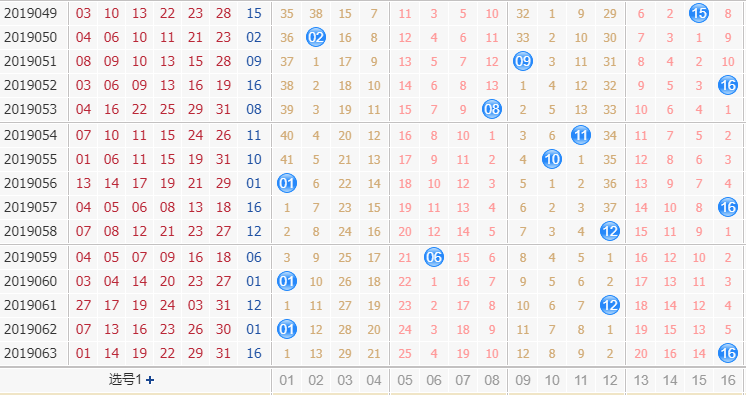 双色球第2019063期号码回顾:【01 14 19 22 29 31】蓝球【16】,每一个蓝球都有8个相关的相生号码,上期的蓝球为16,相生的号码有01 03 06 07 09 10 13 15,本期重点推荐蓝球:01 03 07