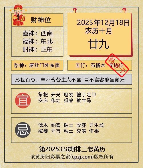 排列三第2025338期老黄历图谜: