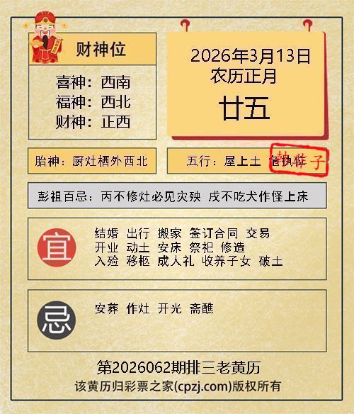 排列三第2026062期老黄历图谜: