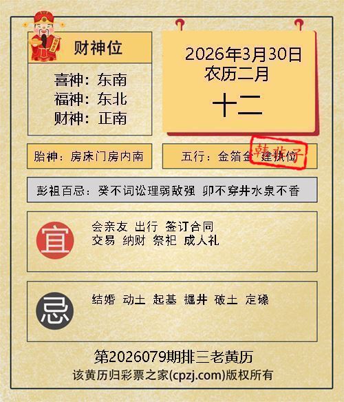 排列三第2026079期老黄历图谜: