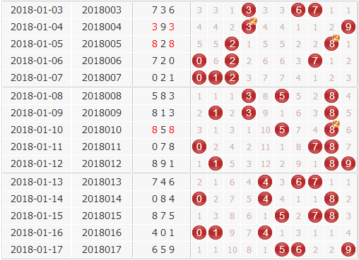 福彩3D第2018203期开奖号045,跨度开出5位点,重复号、隔期号和邻号均有开出,和值下降停留在9位点。隔期号在近十期里总共开出七期,走势比较强,每次连开均稳定在三期,所以本期隔期号保持连开的情况需要着重看好。