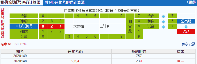 排列三试机号开出235,本期试机号胆码计算器推荐号码212。试机号还是小号码的开出,上期刚刚开出了小号码,看来接下来就是小号码的主场。