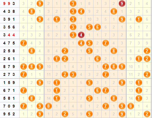 从百位上看:上期开出4,振幅为4,1路振幅。本期应重点关注012振幅。本期结合相关遗漏数据分析,本期不看好号码15。预计本期百位开出的范围看好:03469,重点:346