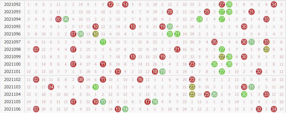 大乐透第21117期奖号为:11 18 21 22 33 + 05 06,其中前区奖号质合比为1:4,奇偶比为3:2,小比为4:1,012路比为3:1:1,最近5年同期号码012路比为2:1:2,质合比为1:4,本期重点看好凤尾开出合数号码。
