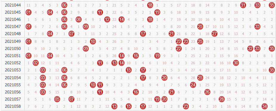 上期开奖号码:08 11 16 29 35 + 01 04,大小比为2:3,奇偶比为3:2,和值为99,三区比为2:1:2。前三期和值开出148-84-99,高点位和值露面一次,在接下来的几期开奖中,和值的攀升趋势明显,应更多留意100-120区段的和值点位。